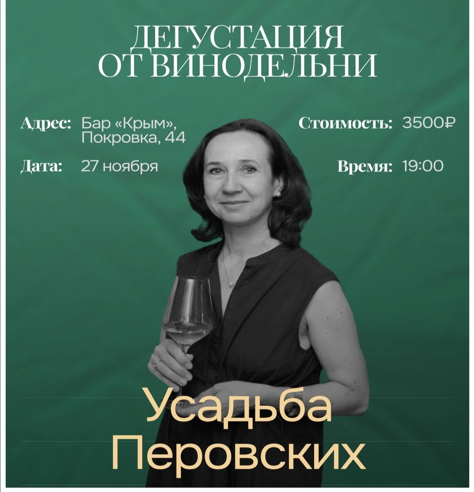 Друзья, 27 ноября в 19:00 в баре «Крым» состоится дегустация с Усадьбой Перовских — одним из старейших хозяйств полуострова.